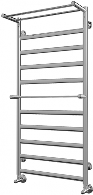 Водяной полотенцесушитель Terminus Хендрикс плюс П11 500x1086 4620768886867 с полкой, с нижним подключением. Для производства полотенцесушителя используется только высококачественная нержавеющая сталь марки AISI 304L с высоким содержанием легирующих элементов, Ni и Cr, это позволяет изделиям сохранять стойкость к агрессивным коррозийным средам, что существенно продлевает срок их эксплуатации. Толщина стенки используемой трубы не менее 2 мм, это обеспечивает 10-ти кратный запас прочности, труба устойчива к резким перепадам давления в системе водоснабжения!