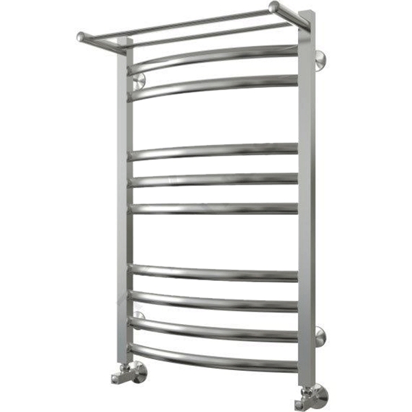 Водяной полотенцесушитель с полкой Terminus Енисей Плюс 500x840 с 11 перекладинами (П10 с полкой) изготовлен из пищевой нержавеющей стали AISI 304L с высоким содержанием легирующих элементов, Ni и Cr, с использованием контактной сварки - аргонно-дуговая технология (TIG). Толщина стенки используемой трубы не менее 2 мм. Поверхность цвета Хром с плазменной полировкой - гладкая и блестящая.