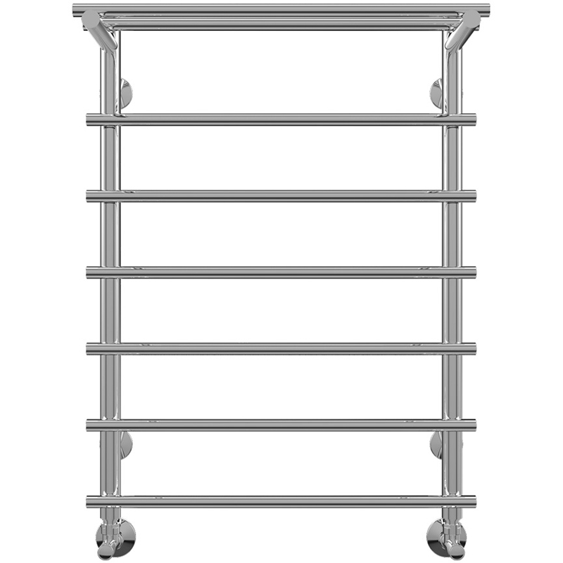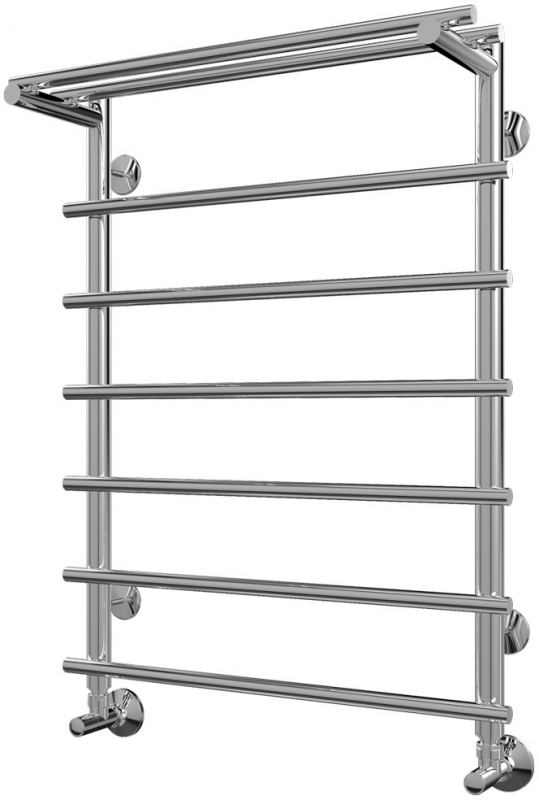 Водяной полотенцесушитель Terminus Ватра П7 500x696 4670030723888 с полкой, с нижним подключением. Для производства полотенцесушителя используется только высококачественная нержавеющая сталь марки AISI 304L с высоким содержанием легирующих элементов, Ni и Cr, это позволяет изделиям сохранять стойкость к агрессивным коррозийным средам, что существенно продлевает срок их эксплуатации. Толщина стенки используемой трубы не менее 2 мм, это обеспечивает 10-ти кратный запас прочности, труба устойчива к резким перепадам давления в системе водоснабжения!
