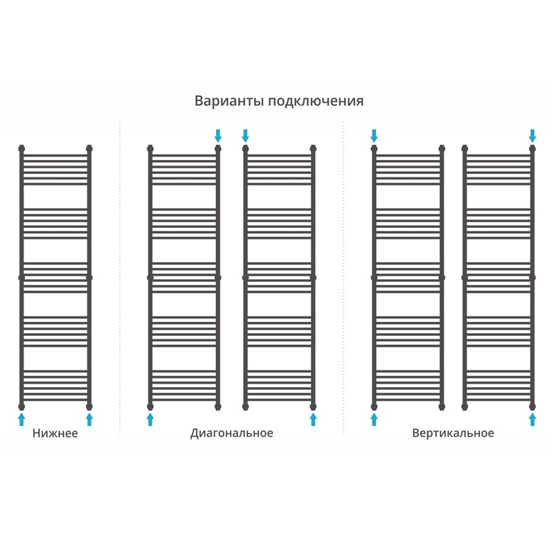 Группировка перекладин 6-6-6-6-6. Все элементы полотенцесушителя выполнены из нержавеющей стали. Выгнутый радиатор с применением технологии покрытия "ПолимерПротект".