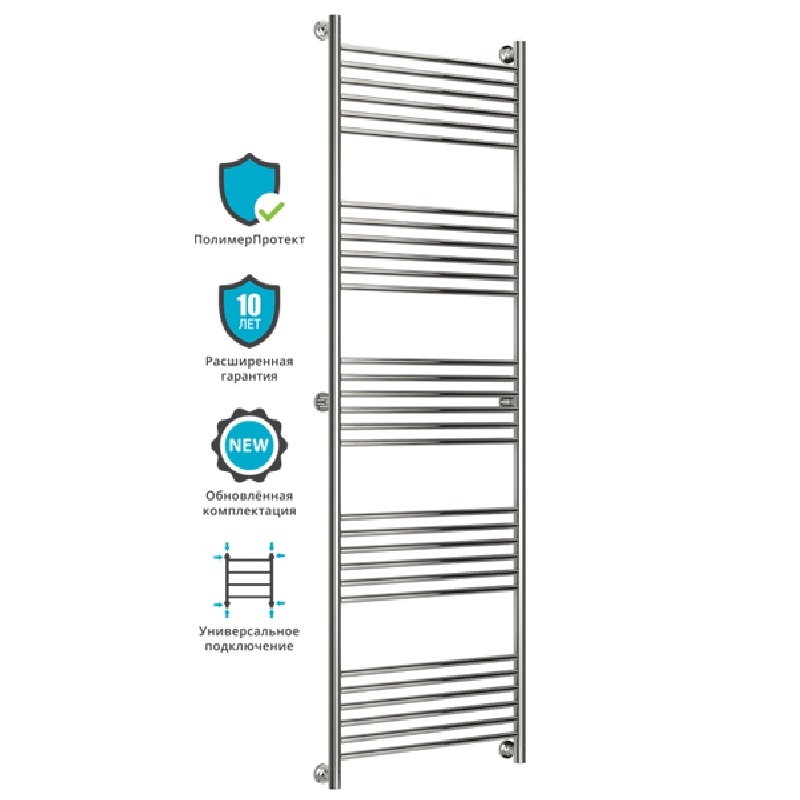 Группировка перекладин 6-6-6-6-6. Все элементы полотенцесушителя выполнены из нержавеющей стали. Выгнутый радиатор с применением технологии покрытия "ПолимерПротект".