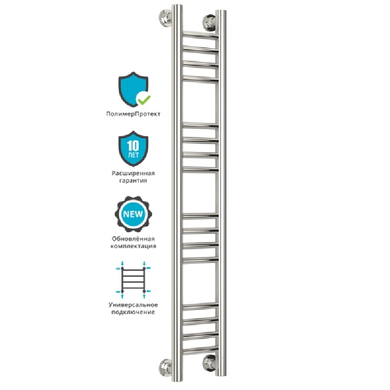 Группировка перекладин 4-4-4-4. Все элементы полотенцесушителя выполнены из нержавеющей стали. Прямой радиатор с применением технологии покрытия "ПолимерПротект".