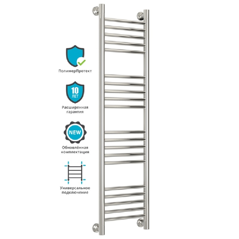 Группировка перекладин 5-5-5-5. Все элементы полотенцесушителя выполнены из нержавеющей стали. Прямой радиатор с применением технологии покрытия "ПолимерПротект".