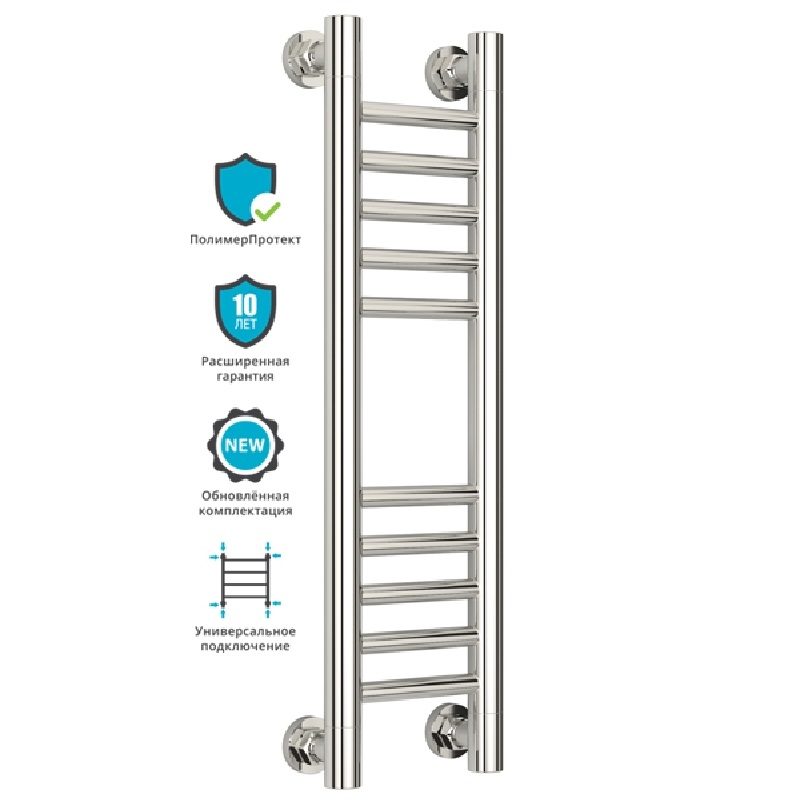 Группировка перекладин 5-5. Все элементы полотенцесушителя выполнены из нержавеющей стали. Прямой радиатор с применением технологии покрытия "ПолимерПротект".