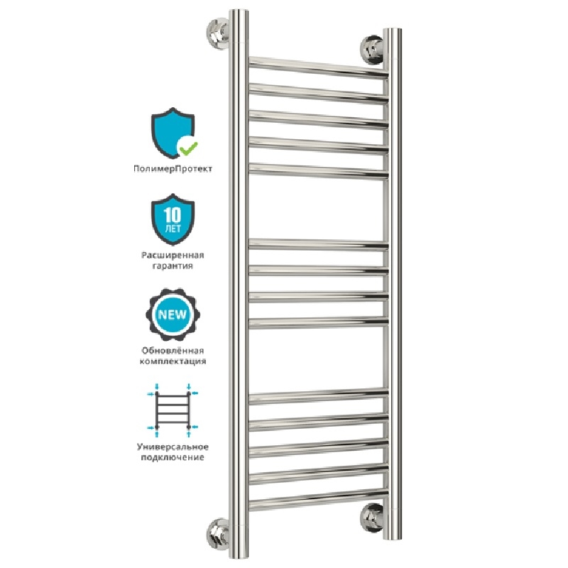 Группировка перекладин 5-4-5. Все элементы полотенцесушителя выполнены из нержавеющей стали. Прямой радиатор с применением технологии покрытия "ПолимерПротект".