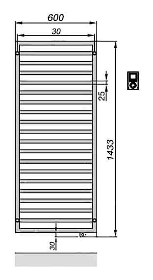 Электрический полотенцесушитель Zehnder Quaro QAE-140-060/ID. Цвет - белый (RAL 9016). Мощность 600 Вт. Электропатрон SAFIR. Инфракрасный блок дистанционного управления. Монтажный комплект в цвет полотенцесушителя.