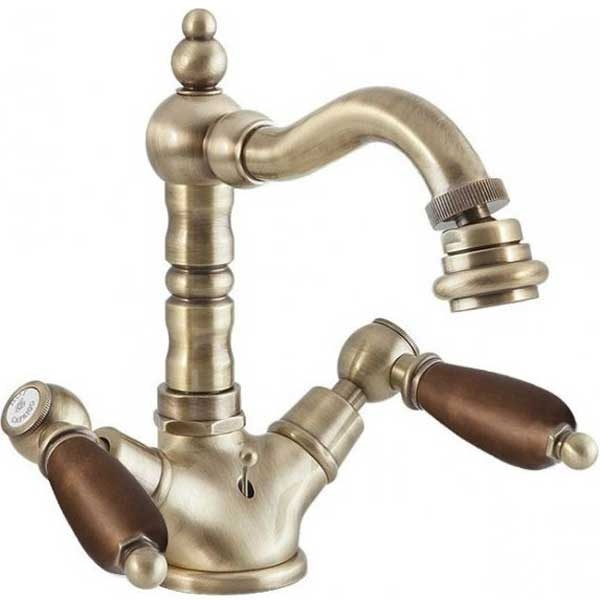 Двухвентильный смеситель с поворотным изливом и аэратором, монтируемый в одно отверстие. Имеет долгий срок эксплуатации за счет качественных деталей, неприхотлив в уходе. Станет прекрасным дополнением ванной комнаты в классическом или ретро стиле.