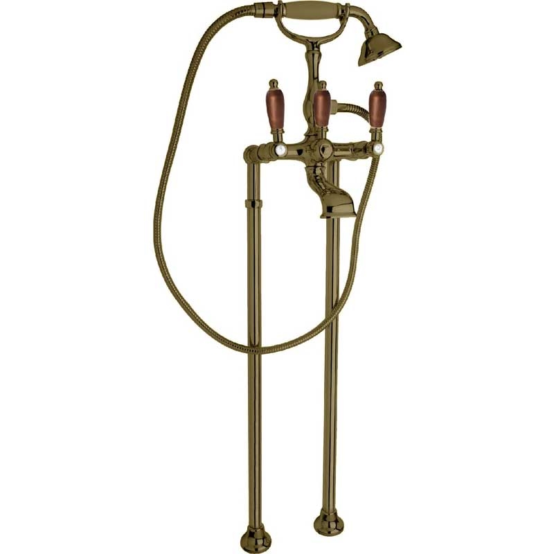 Напольный двухвентильный смеситель с фиксированным изливом и аэратором, монтируемый в два отверстия. Имеет долгий срок эксплуатации за счет качественных деталей, неприхотлив в уходе. Станет прекрасным дополнением ванной комнаты в классическом или ретро стиле.