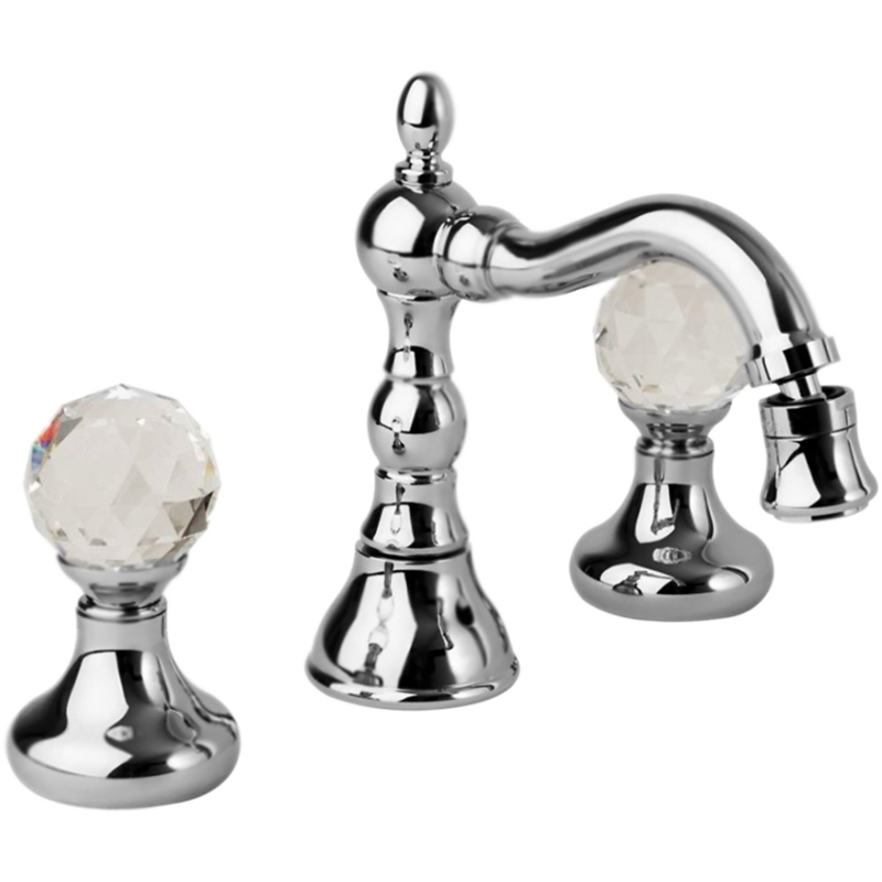 Смеситель для биде Cezares Atlantis ATLANTIS-BBS2-03/24-Sw двухвентильный, монтируемый в три отверстия, с донным клапаном, с аэратором. Смелое украшение в свете модных тенденций: сверкающие кристаллы Swarovski в виде хрустальных шаров на ручках дополнены утонченными классическими линиями корпуса смесителя. Этот образец безупречного мастерства несомненно создаст изысканный акцент в интерьере.