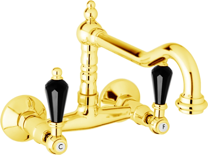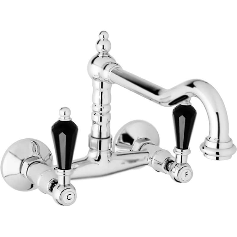 Настенный смеситель для кухни Cezares Diamond DIAMOND-LLP-03/24-Sw-N двухвентильный, монтируемый в два отверстия. Смелое украшение в свете модных тенденций: сверкающие черные кристаллы Swarovski на каплевидных ручках дополнены утонченными классическими линиями корпуса смесителя. Этот образец безупречного мастерства несомненно создаст изысканный акцент в интерьере.