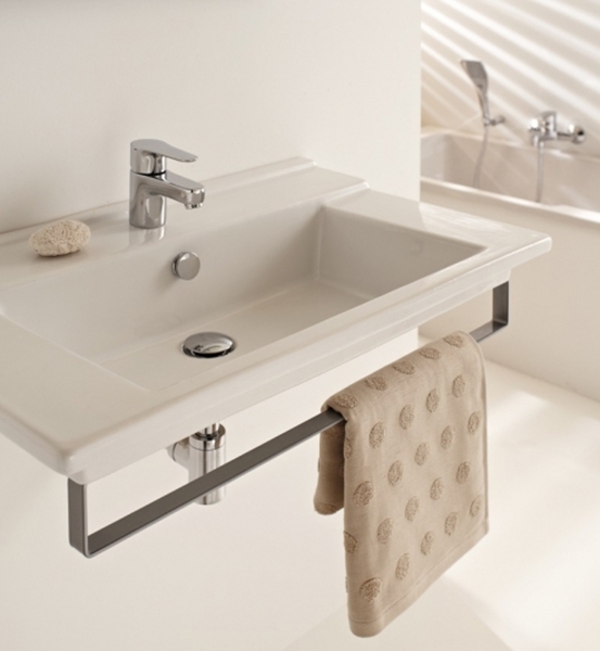 Удобные широкие бортики и приподнятая задняя часть совмещают оригинальный дизайн и функциональность. Раковина дополнит интерьер ванной комнаты в современном стиле.