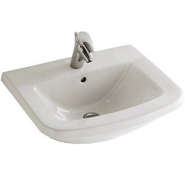 Компактная раковина с одним отверстием под смеситель дополнит интерьер ванной комнаты в современном стиле.