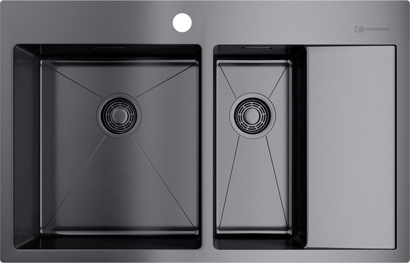 Кухонная мойка Omoikiri Akisame 78-2 L GM 4973101 с дополнительной чашей, крылом и переливом. Цвет: вороненая сталь.