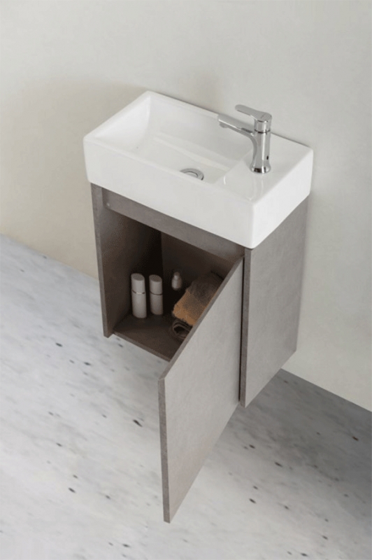 Подвесная тумба под раковину BelBagno Kraft Mini 45 KRAFT MINI-450/250-1A-SO-PG-R с одной распашной дверцей. Предназначена для использования в ванных комнатах с повышенной влажностью. Соответствует международным стандартам системы ISO, пройдены тестирование и контроль.