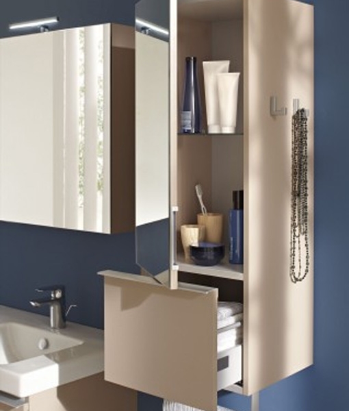 Шкаф-пенал Jacob Delafon Odeon Up 35 стойко выдержит постоянное воздействие влаги и не подвергнется деформациям подчеркнув общий вид санузла.