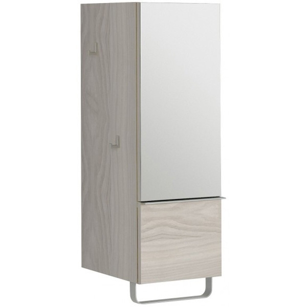 Одна распашная дверца с зеркалом, один выдвижной ящик с механизмом доведения для плавного и тихого закрывания. Внутри две вкладные полочки.