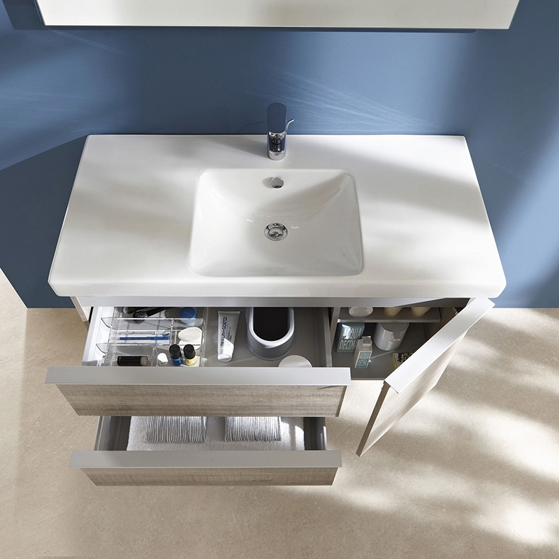 Универсальный дизайн тумбы дополнит интерьер большинства ванных комнат в современном стиле. Простые и изящные линии, функциональность и удобство модели придутся по душе всей семье.