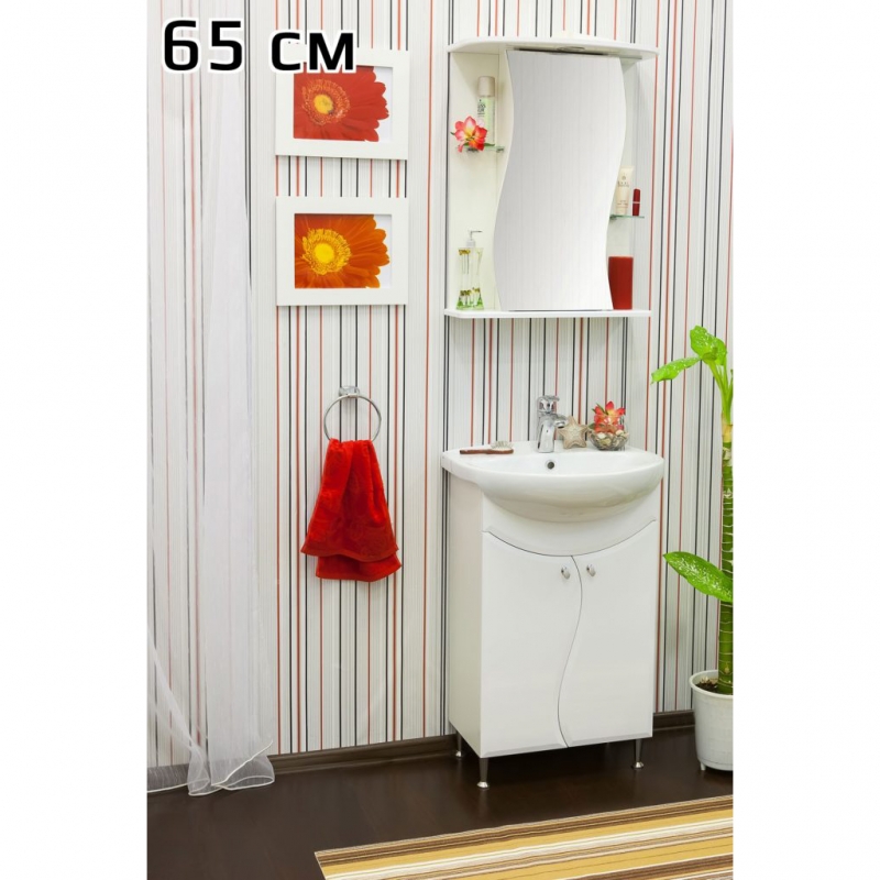 Зеркальный шкаф Sanflor Лина 65 белый Н0000000751 правосторонний со светильником.