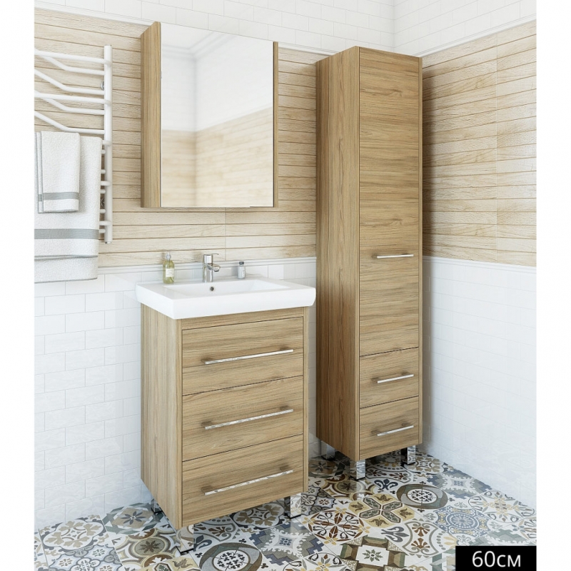 Зеркальный шкаф Sanflor Ларго 60 Швейцарский вяз Н0000000039 правосторонний.