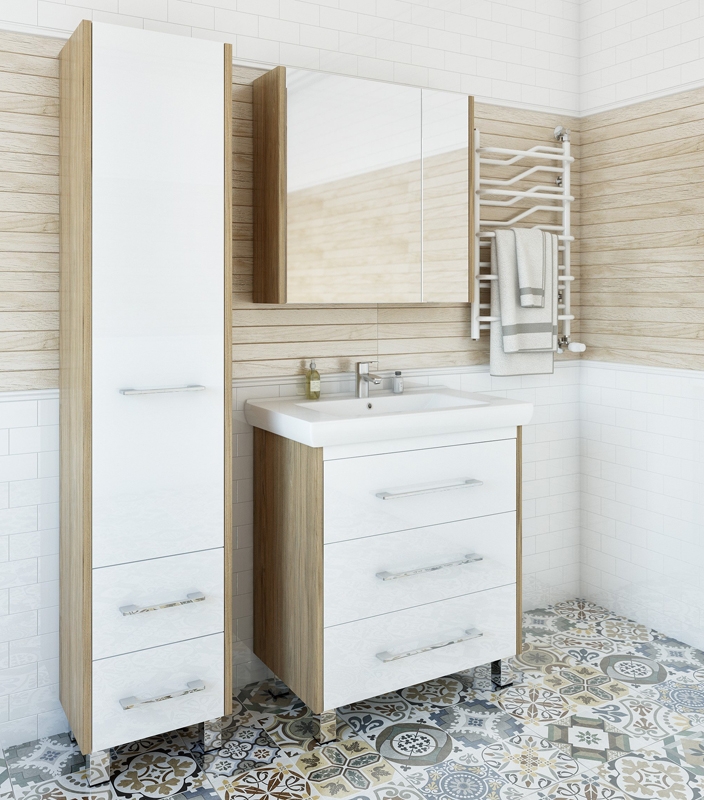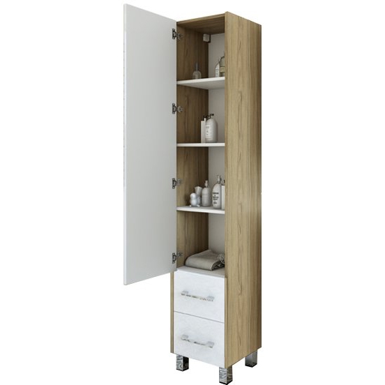 Напольный шкаф-пенал Sanflor Ларго 40 L Н0000000028 Швейцарский вяз, в скандинавский стиле, на четырех хромированных ножках, с распашной дверцей (петли слева) и с выдвижными ящиками.