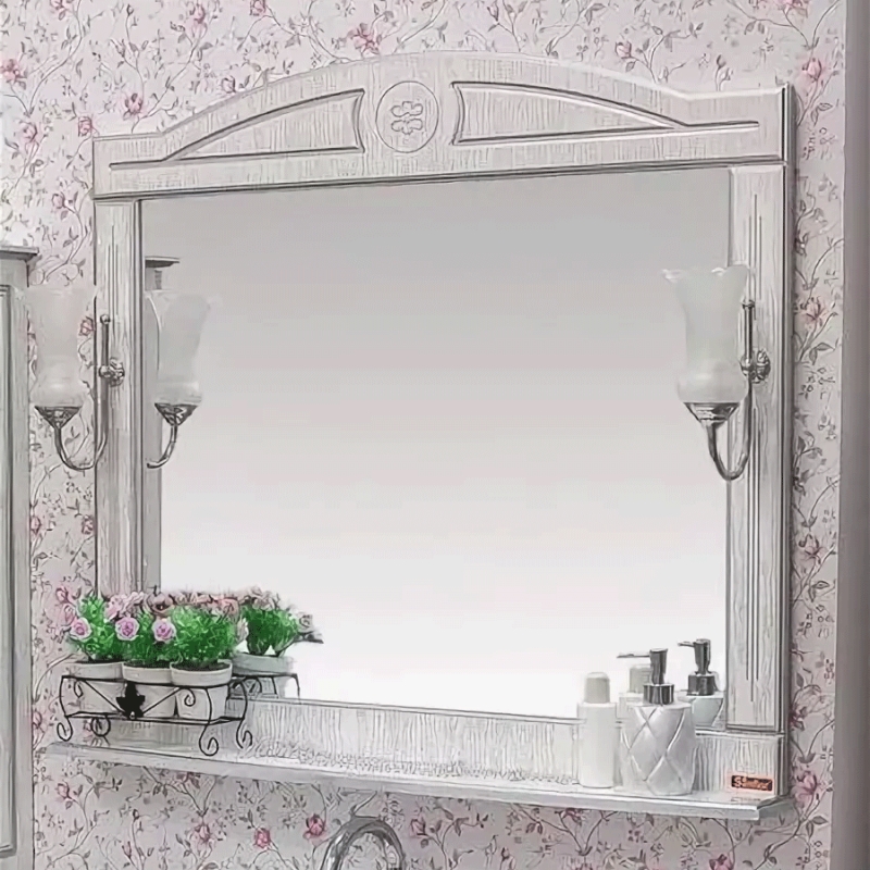 Зеркало Sanflor Адель 100 Н0000000748 Белое Патина серебро с полкой и светильниками.
