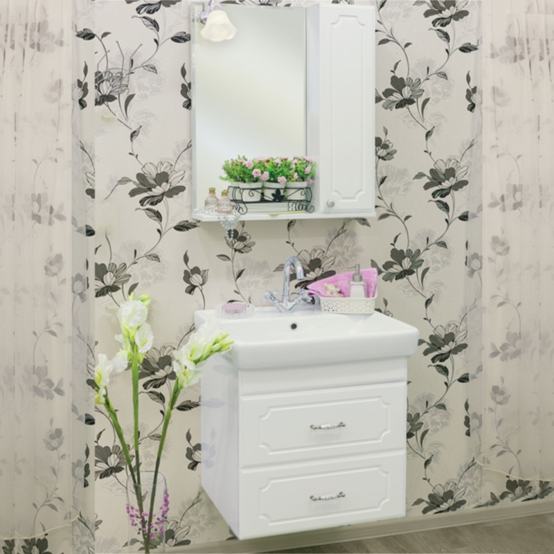 Подвесная Тумба с раковиной Sanflor Ксения 60 Н0000000127 с фрезеровкой, с двумя выдвижными ящиками, для использования в ванных комнатах с повышенной влажностью.