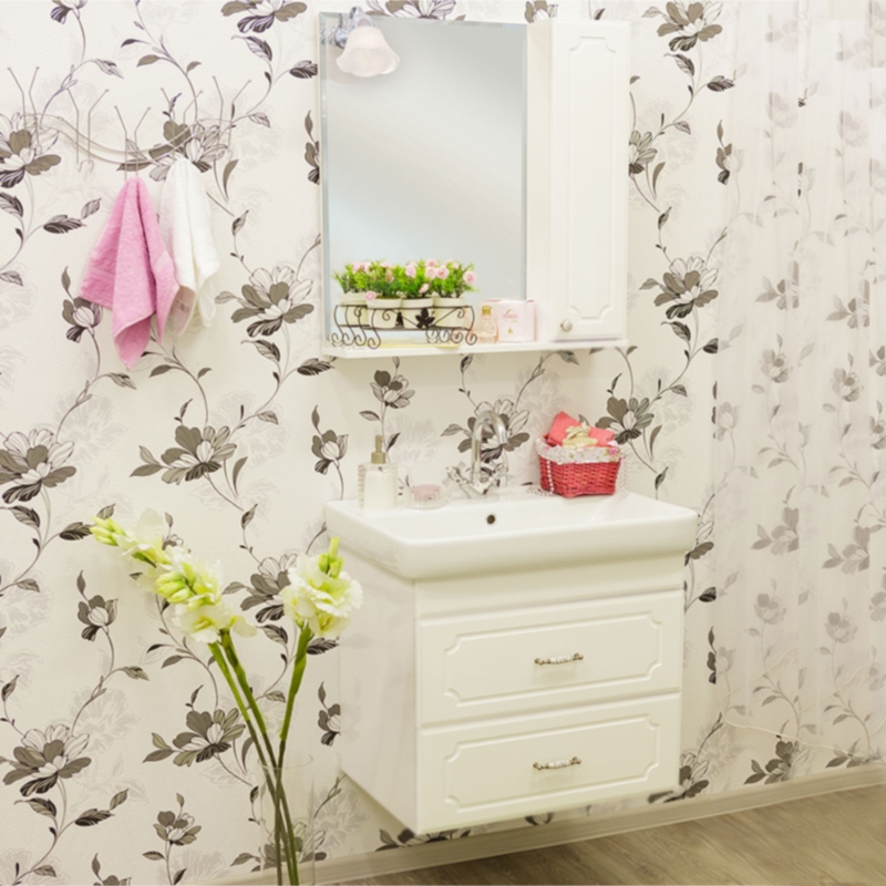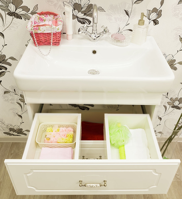 Подвесная Тумба с раковиной Sanflor Ксения 70 Н0000000126 с фрезеровкой, с двумя выдвижными ящиками, для использования в ванных комнатах с повышенной влажностью.