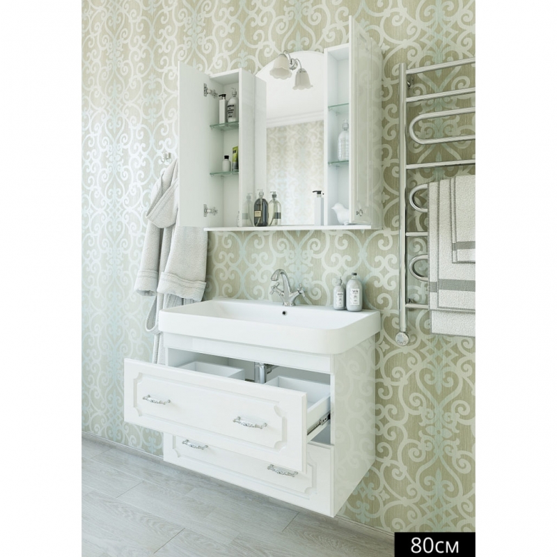 Тумба с раковиной Sanflor Ксения 80/2 Н0000000124 напольная изготовлена из качественных материалов в современном элегантном стиле. Поможет в создании ультрамодной ванной комнаты с сохранением актуальной функциональности. Предназначена для использования в условиях повышенной влажности.