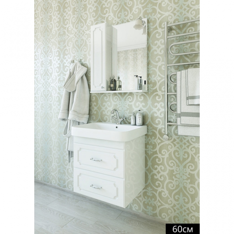 Зеркало Sanflor Ксения 60 Белое Н0000000116 со шкафчиком с левой стороны.