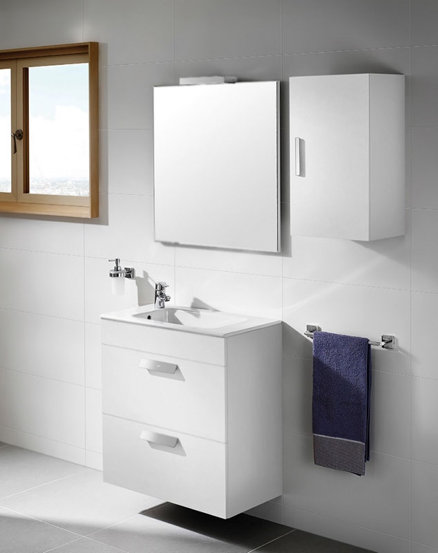 Подвесной шкаф Roca Debba 35 ZRU9302712 с распашной дверцей. Предназначен для использования в ванных комнатах с повышенной влажностью.