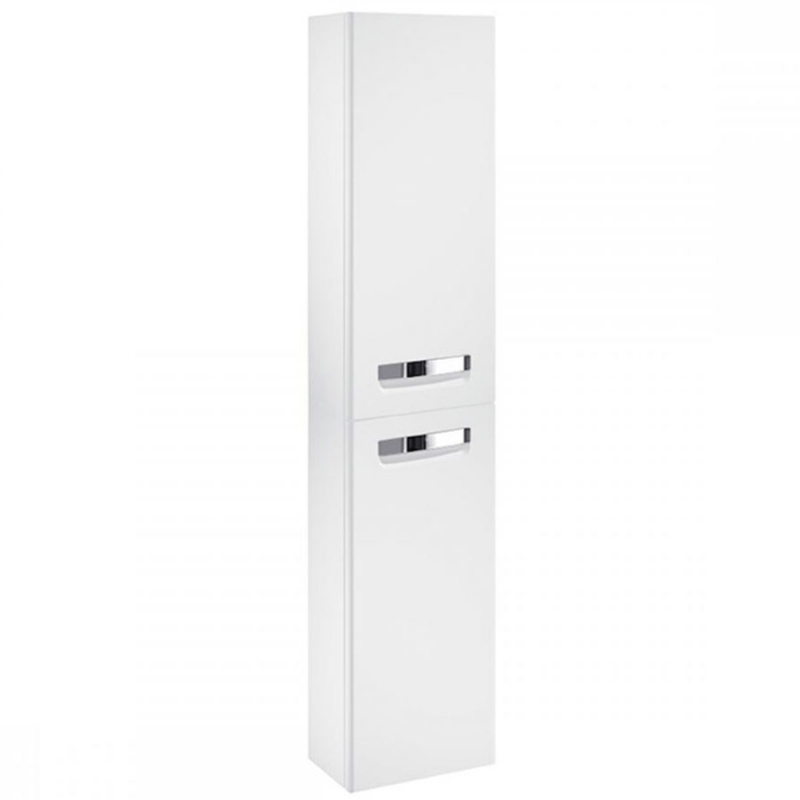 Шкаф-пенал Roca The Gap 35 ZRU9302884 L выполнен в современном дизайне с интегрированными металлическими ручками, подчеркивающими изящность серии. Он имеет два отделения с внутренними полками и распашными дверцами (петли слева) для хранения ванных принадлежностей и отлично впишется в ванную комнату в хай-тек или современном стиле.