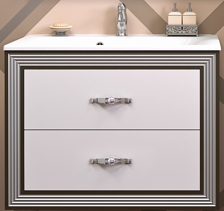 Комплект мебели для ванной Opadiris Карат 80. Цвет: белый с серебряной патиной.