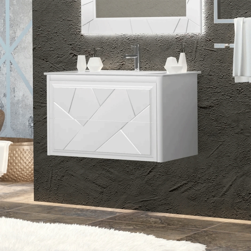 Подвесная тумба под раковину Opadiris Луиджи 70 00-00000541 с двумя выдвижными ящиками. Цвет: белый матовый.