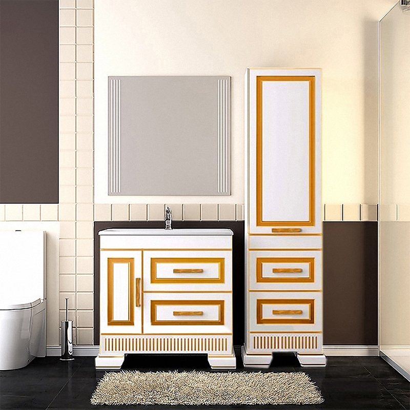 Станет шикарным элементом в интерьере ванной комнаты. Превосходно подходит как для классического, так и для современного стиля. Роскошный фасад выполнен с глубокой фрезеровкой с патиной, а также дополнен удобными ручками-скобами.