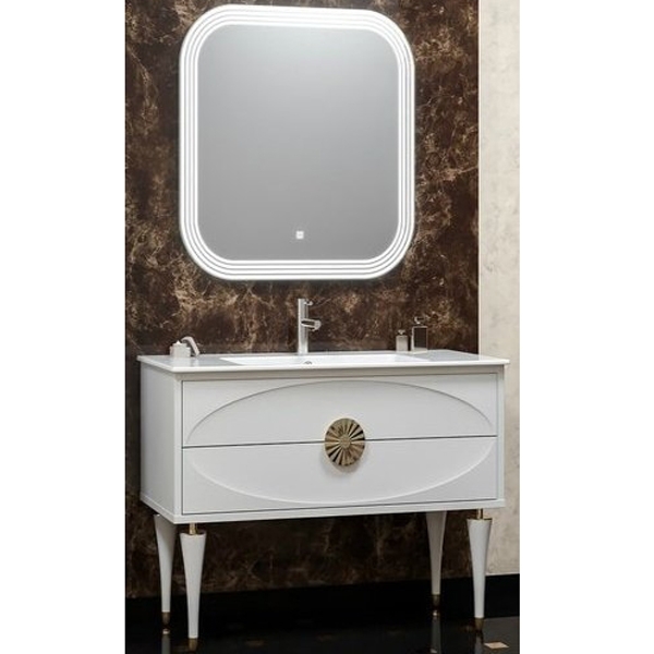 Комплект мебели для ванной Opadiris Ибица 90. Цвет: белый глянец/золото.