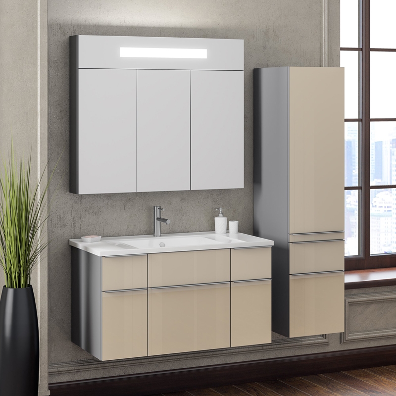 Шкаф-пенал Opadiris Кристалл 30 R Z0000010459. Цвет: титан/бежевый.
