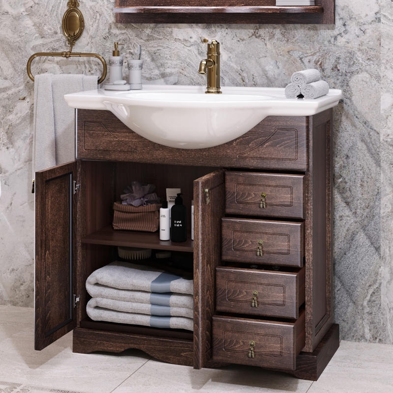 Комплект мебели для ванной Opadiris Клио 80. Цвет: орех антикварный.
