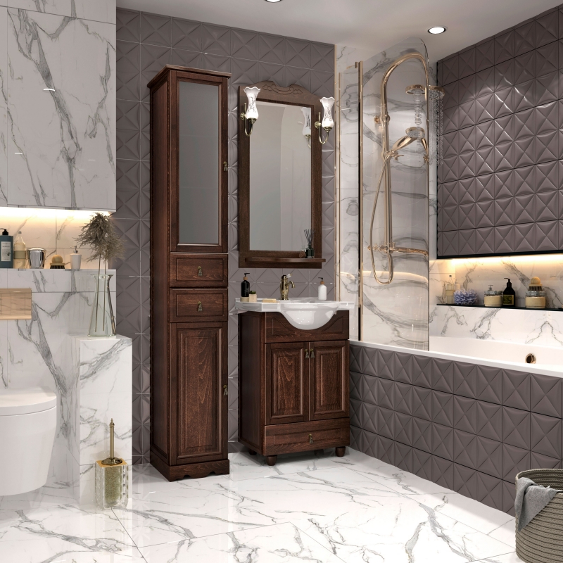 Комплект мебели для ванной Opadiris Тибет 50. Цвет: орех антикварный.