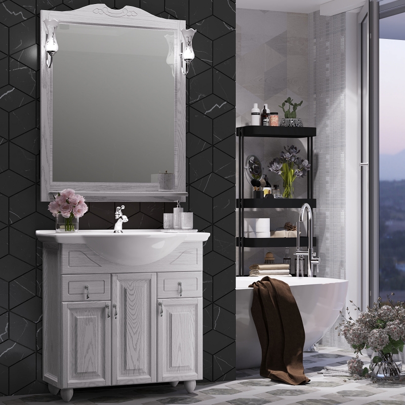 Комплект мебели для ванной Opadiris Тибет 80. Цвет: ясень белое серебро.