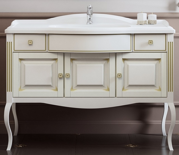 Тумба под раковину Opadiris Лаура 120 Z0000009324. Цвет: белый матовый с золотой патиной.