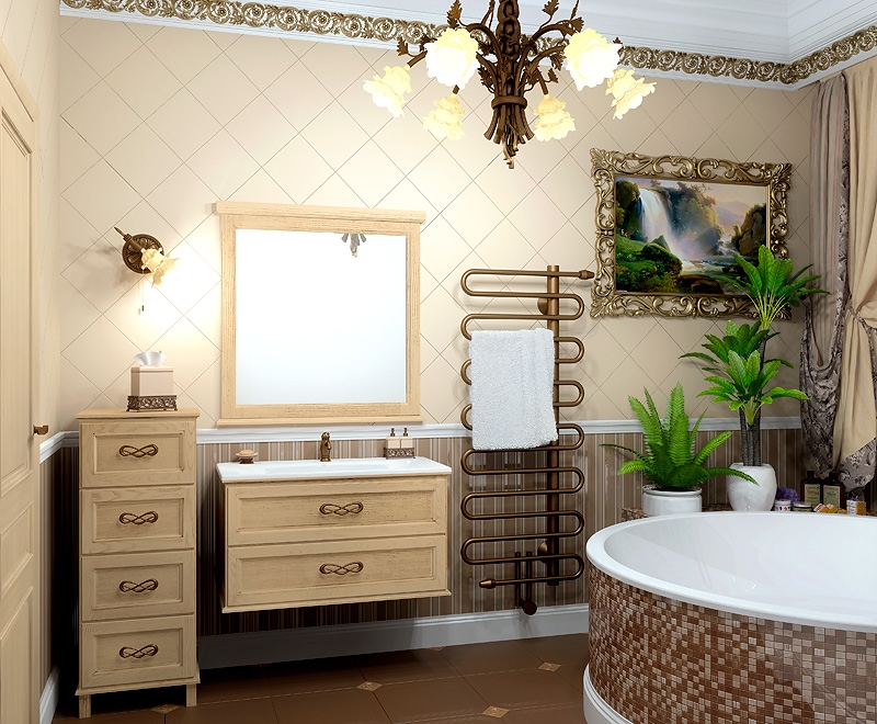 Великолепный стиль неоклассики с лаконичными линиями сочетаются с функциональностью и удобством. Прекрасно дополнит классический интерьер ванной комнаты.