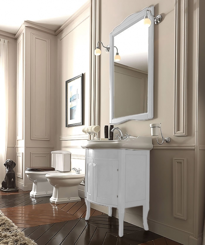Подвесное прямоугольное зеркало в фигурной раме Kerasan Retro 63 731330 bi mat. Предназначено для использования в ванных комнатах с повышенной влажностью.
