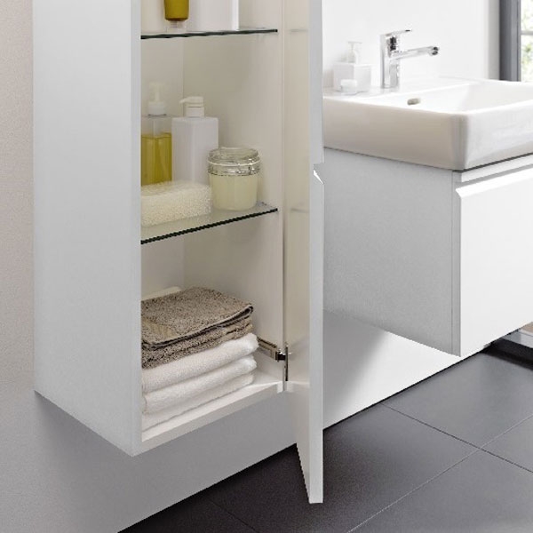 Удобная система хранения позволит с комфортом использовать пенал в Вашей ванной комнате. Прекрасно подходит для интерьера в стилистике современного дизайна.