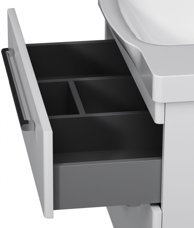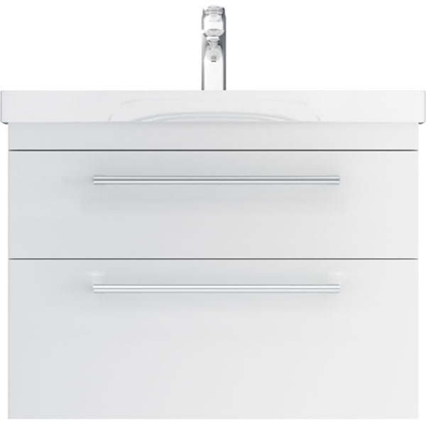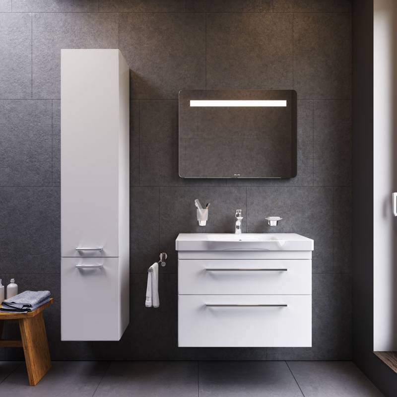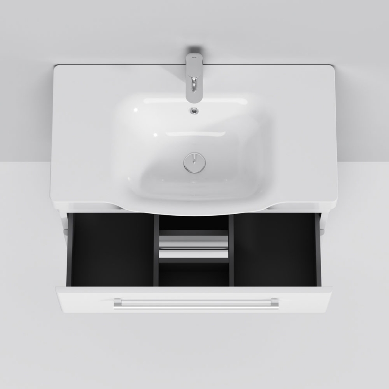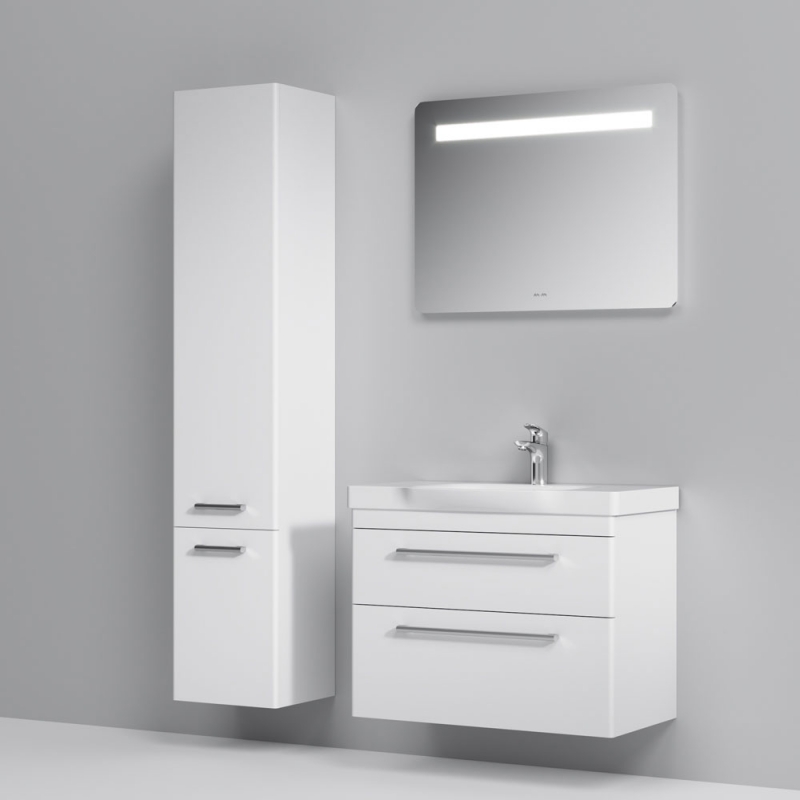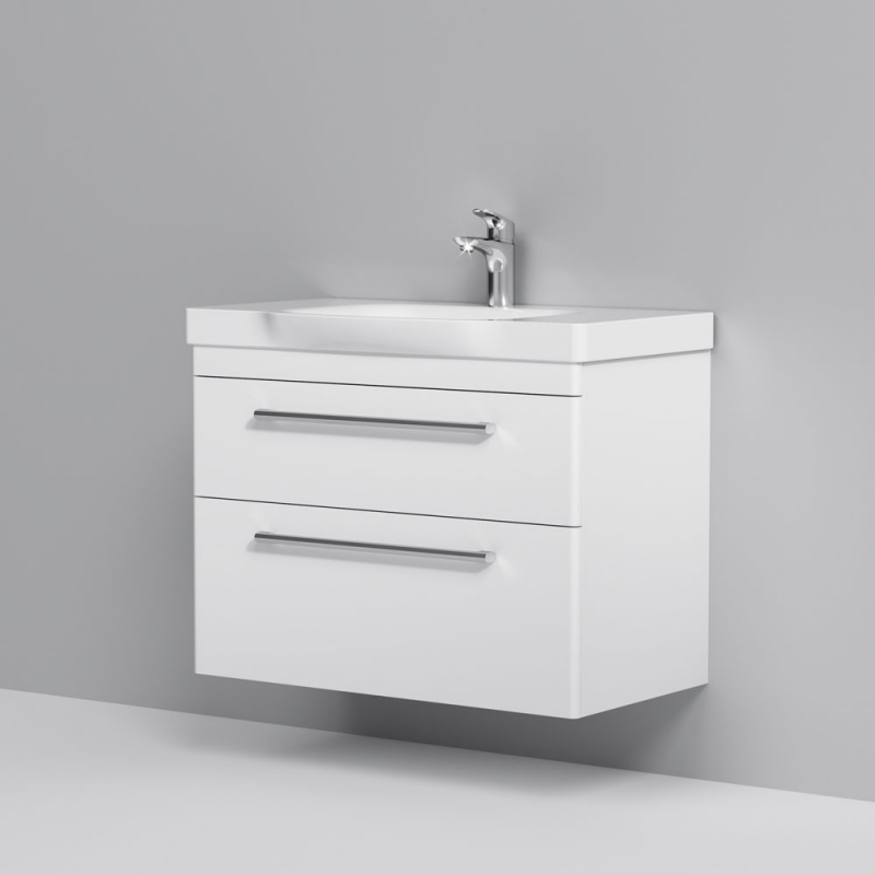 Подвесная тумба под раковину AM.PM Like S 80 M81FHX0802WG белая, с глянцевой поверхностью, с двумя выдвижными ящиками с хромированными ручками. Для длительного срока службы в ванных комнатах с повышенной влажностью.