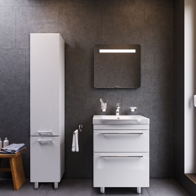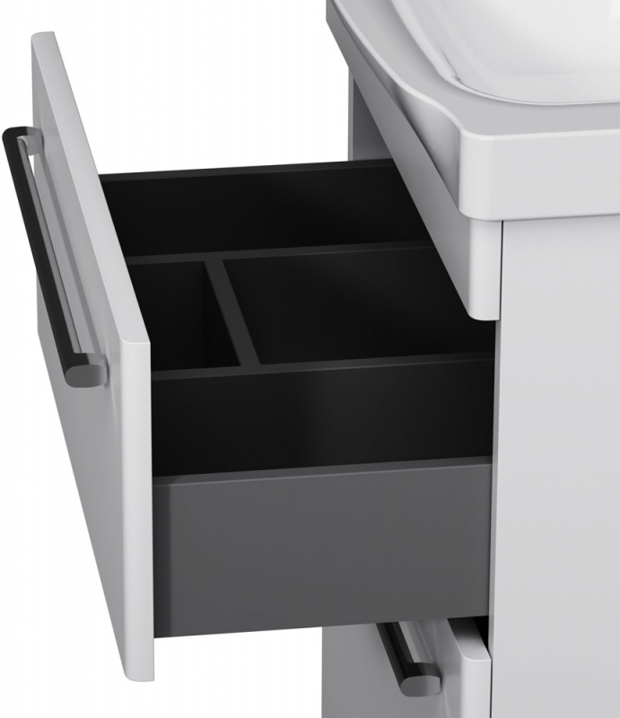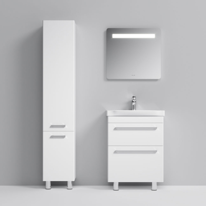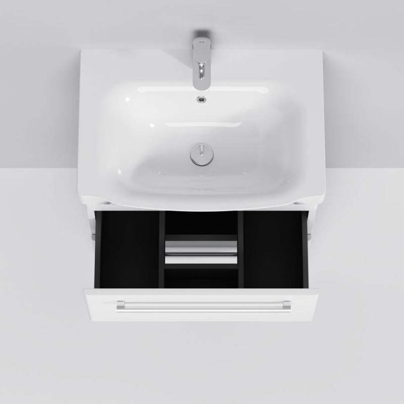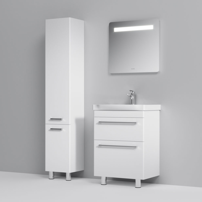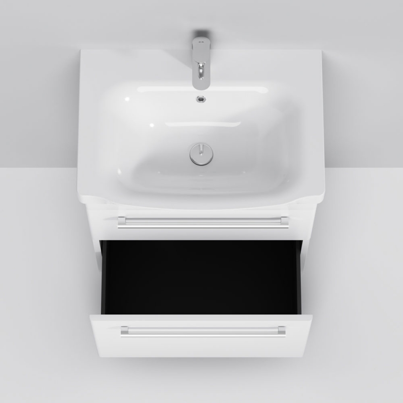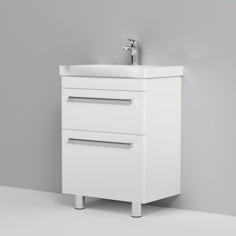 Тумба под раковину AM.PM Like S 65 M81FSX0652WG белая, с глянцевой поверхностью, с двумя выдвижными ящиками, с двумя ножками. Для длительного срока службы в ванных комнатах с повышенной влажностью.