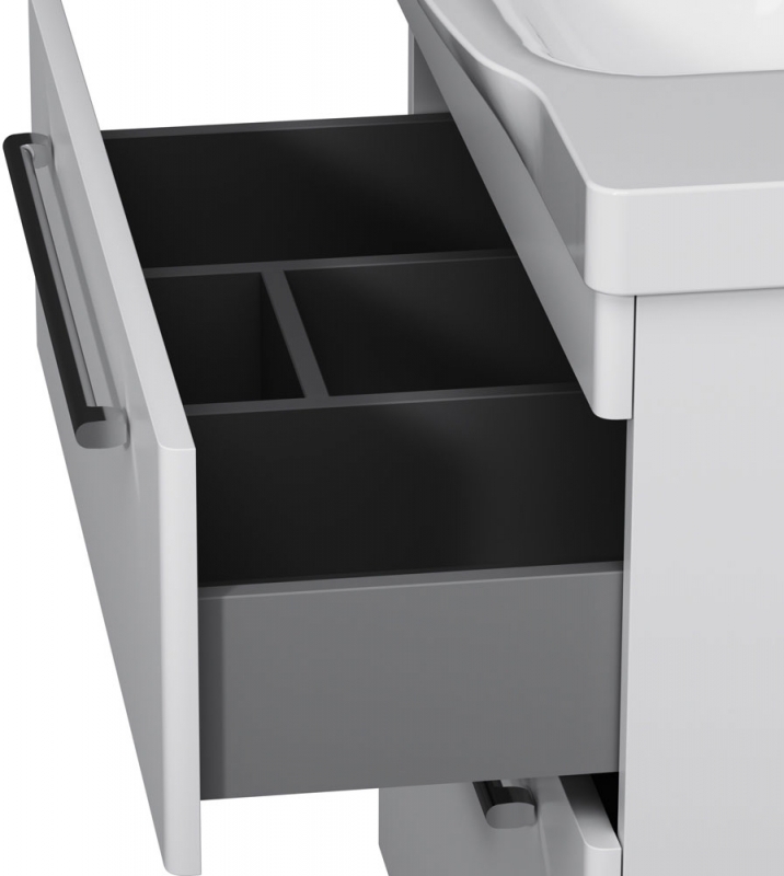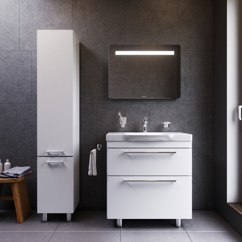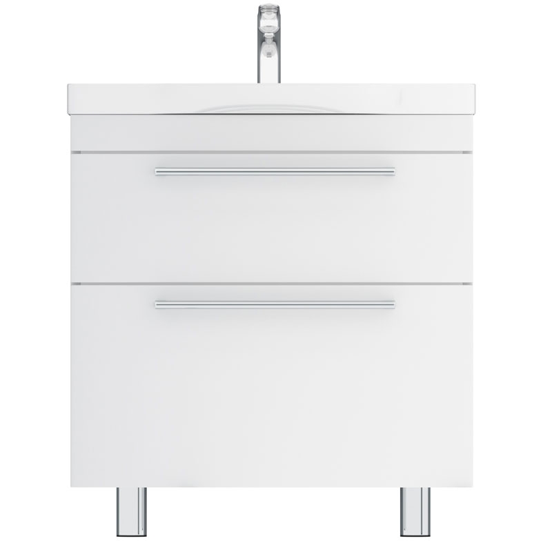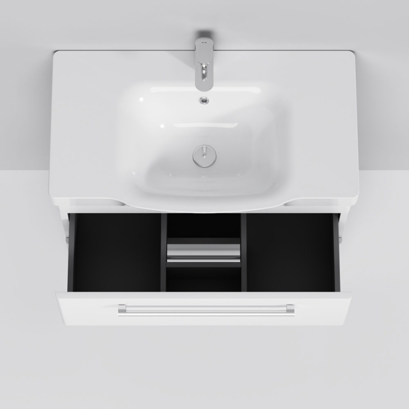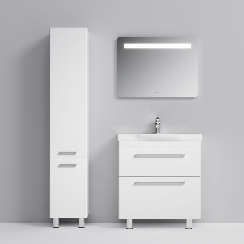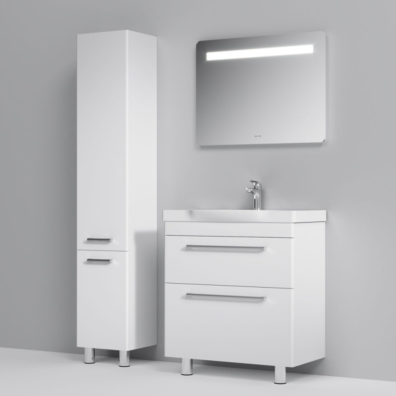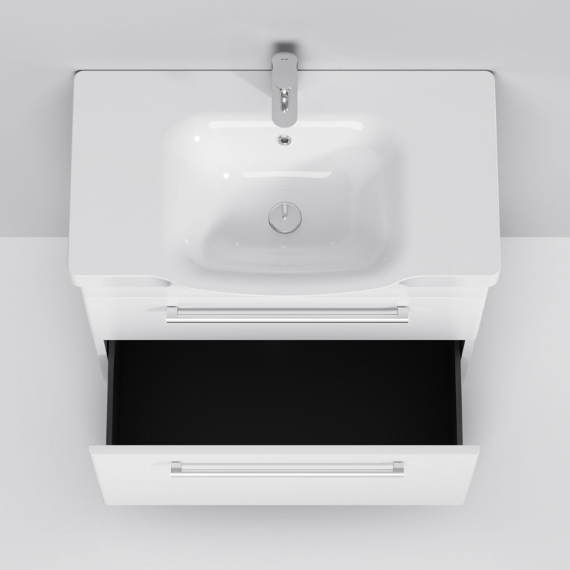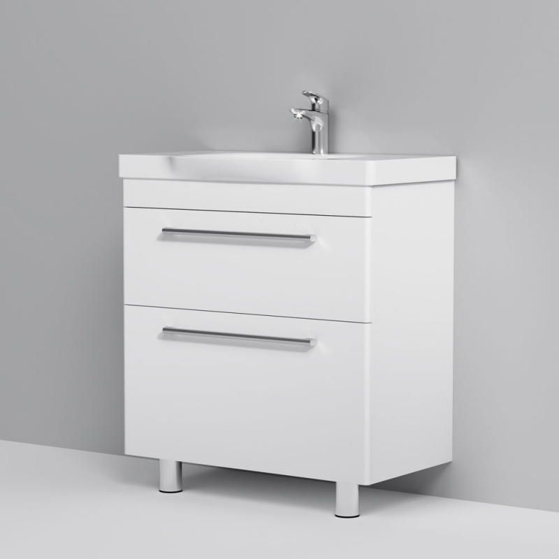 Тумба под раковину AM.PM Like S 80 M81FSX0802WG белая, с глянцевой поверхностью, с двумя выдвижными ящиками, с двумя ножками. Для длительного срока службы в ванных комнатах с повышенной влажностью.