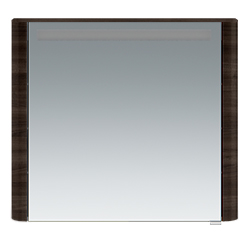 Левосторонний зеркальный шкаф в ванную AM.PM Sensation 80 M30MCL0801TF с одной распашной дверцей и двумя полками за ней, с подсветкой сверху, с розеткой и выключателем.