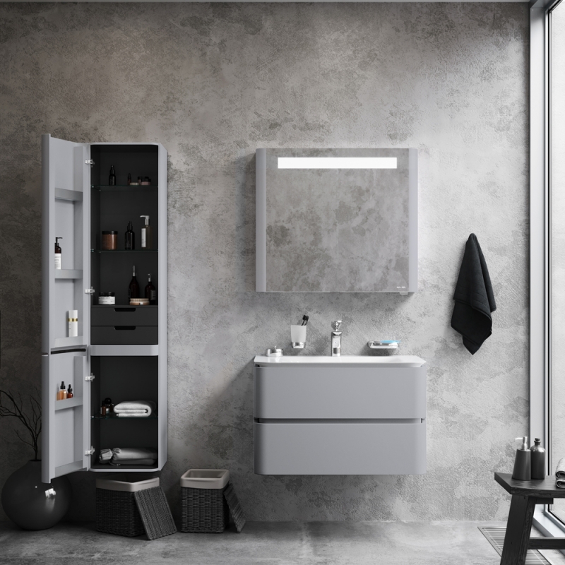 Подвесная тумба под раковину AM.PM Sensation 80 M30FHX0802FG с двумя выдвижными ящиками. Для использования в ванных комнатах с повышенной влажностью.