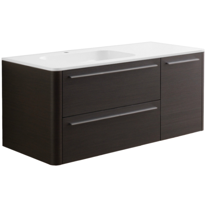 Подвесная тумба под раковину AM.PM Awe 115 M15FHL1153VF с двумя выдвижными ящиками и одной распашной дверцей. Сочетание органических и природных форм олицетворяют собой идеальный пример итальянского минимализма. Премиальный дизайн в каждой детали. Текстура отделки напоминает натуральное дерево, но обладает большей долговечностью и влагостойкостью. Предназначена для использования в ванных комнатах с повышенной влажностью.