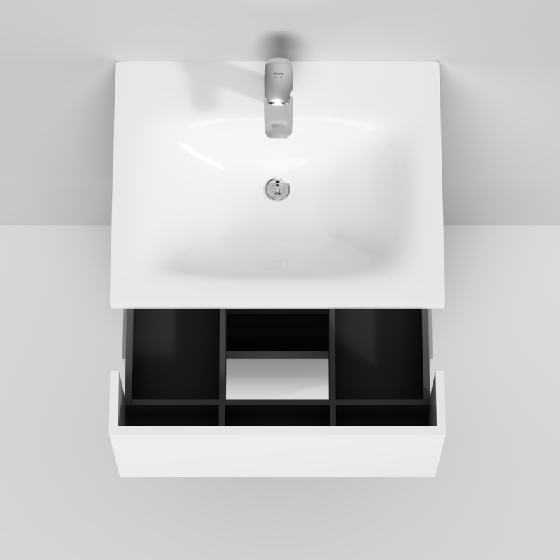 AM.PM Spirit V2.0 61 (M70AFHX0602WG) - функциональная, практичная и надежная тумба под раковину. Состоит из четырех независимых, вместительных ящиков, каждый из которых разделен отдельными секциями для укладки туалетных принадлежностей, полотенец и прочих важных мелочей. Новаторский подход к разработке дизайна позволил уложить в минималистичный стиль высокую функциональность, выраженную в легкой доступности всего необходимого. Функция открывания двери одним нажатием push-to-open избавляет от выступающих частей в виде ручек.